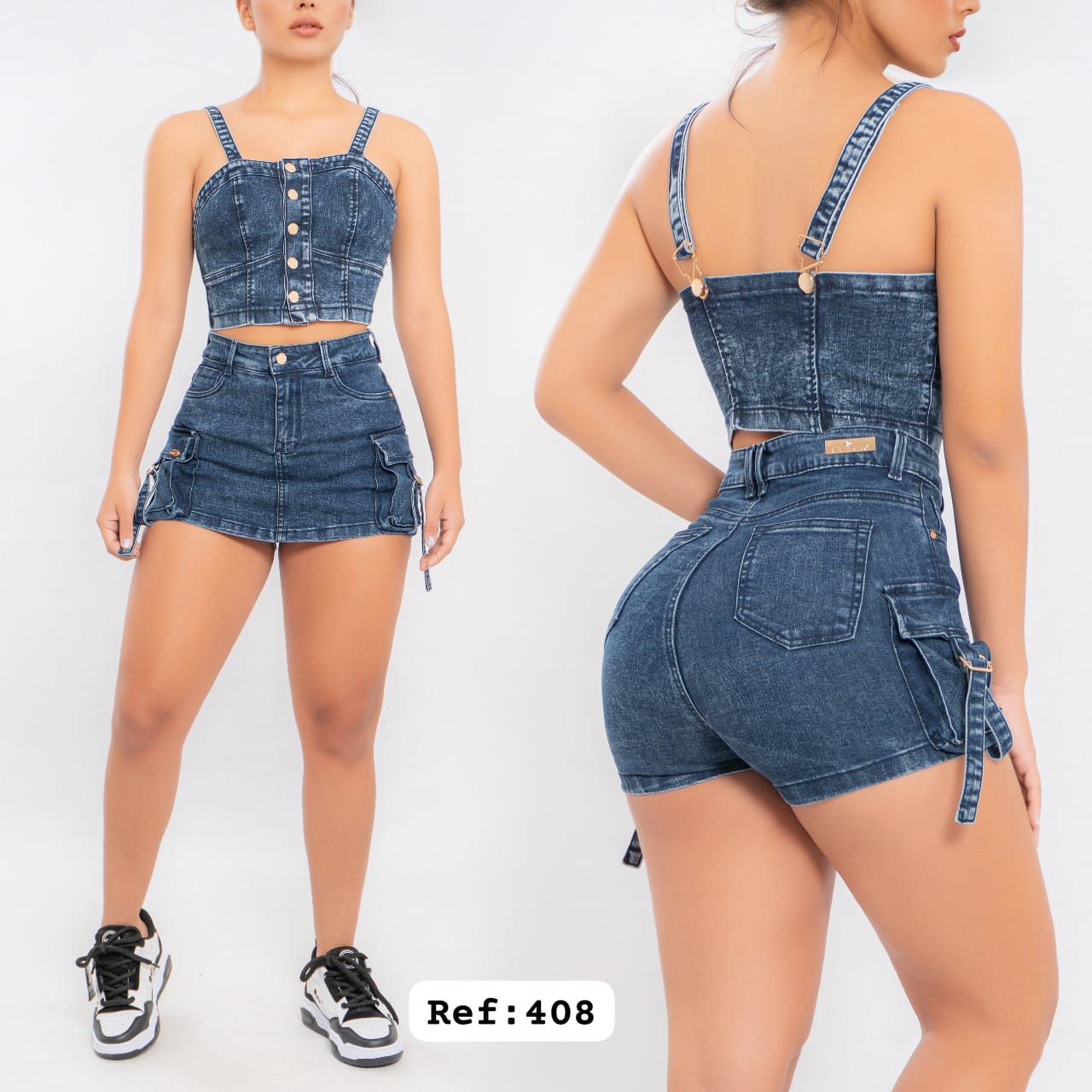 Conjunto Jeans Blusa Corta y Falda Short